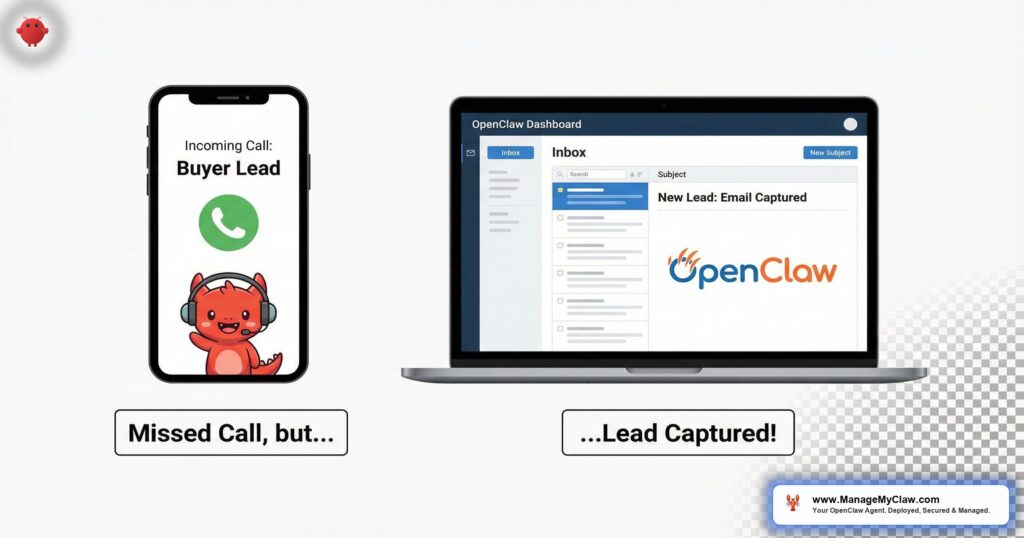 The strongest play isn’t voice AI or OpenClaw. It’s both. Use a voice AI service for the 28% of leads that call. Use OpenClaw for the 72% that email, text, and submit forms. Your phone is covered. Your inbox is covered. Your follow-up is automated. Nothing falls through.