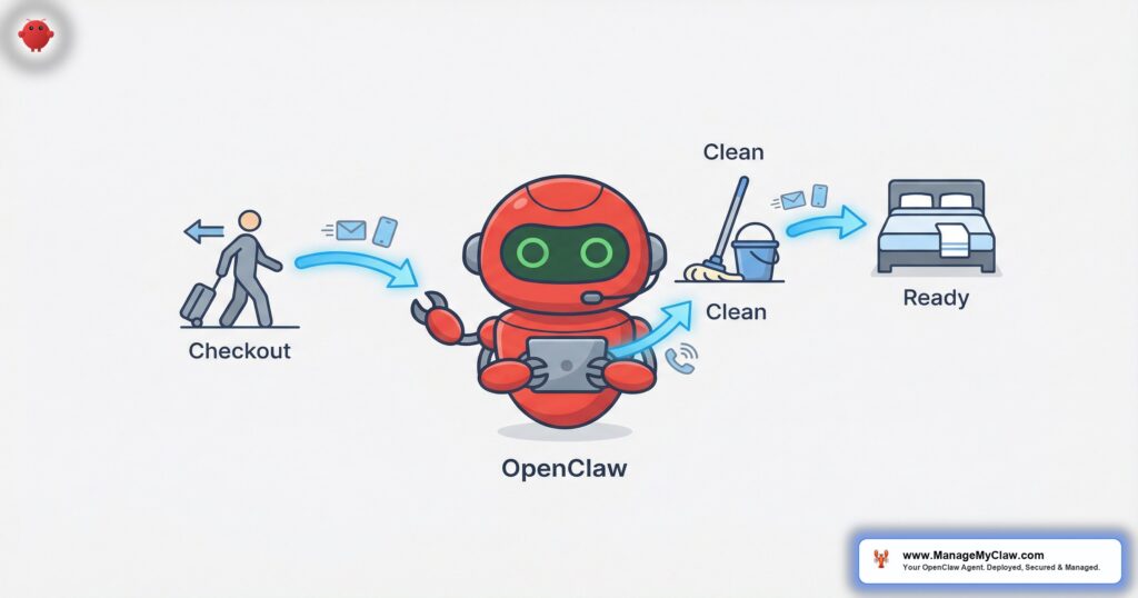 For the full scaling picture — how turnover automation fits into a portfolio-wide operations strategy from 5 to 50 properties — see our scaling playbook. ManageMyClaw deploys the complete turnover pipeline, including cleaning dispatch, maintenance handoff, and guest notification workflows. See pricing here.